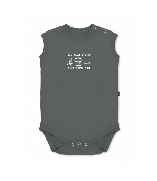 Baby body sleeveless with design for kid with design 1056 BIKE BEER BED in color DARK GRAY
