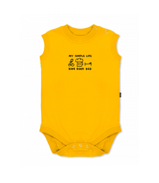 Baby body sleeveless with design for kid with design 1056 BIKE BEER BED in color GOLDEN CREAM