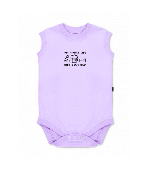 Baby body sleeveless with design for kid with design 1056 BIKE BEER BED in color LAVENDER