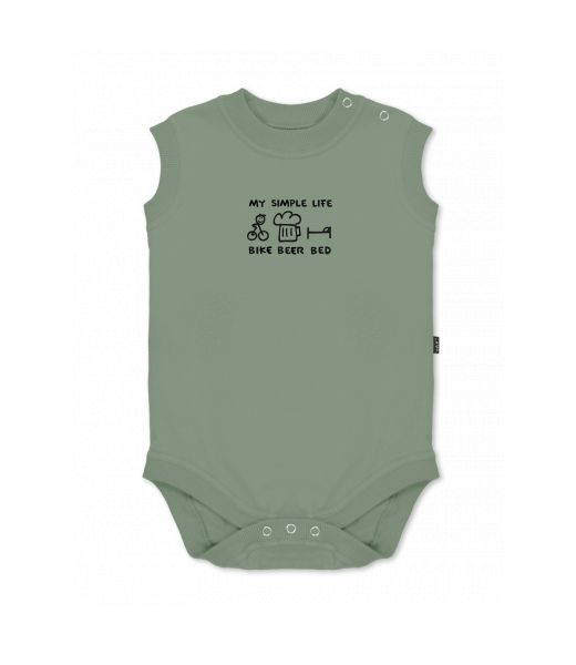 Baby body sleeveless with design for kid with design 1056 BIKE BEER BED in color OLIVA