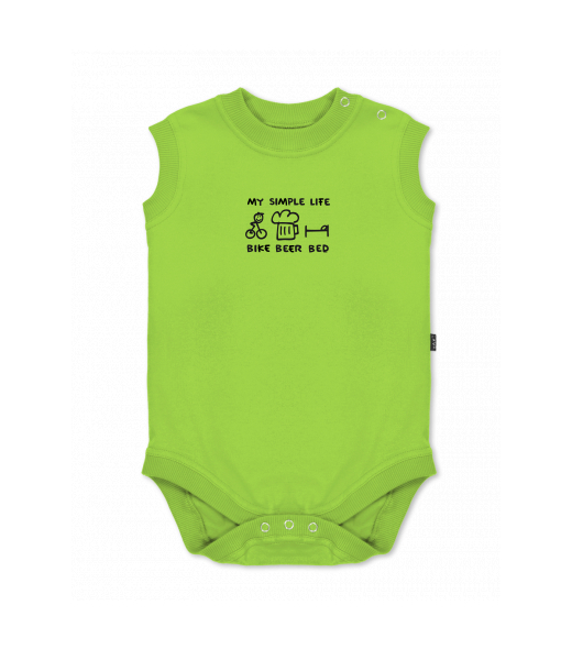 Baby body sleeveless with design for kid with design 1056 BIKE BEER BED in color PARROT GREEN