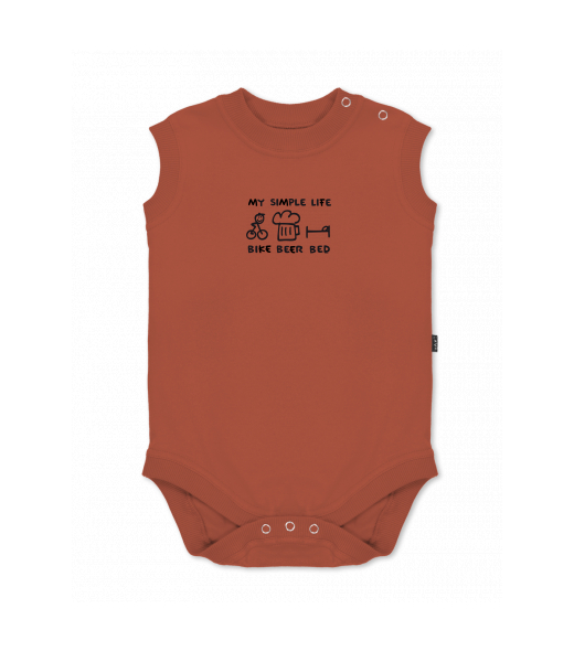 Baby body sleeveless with design for kid with design 1056 BIKE BEER BED in color TERRA