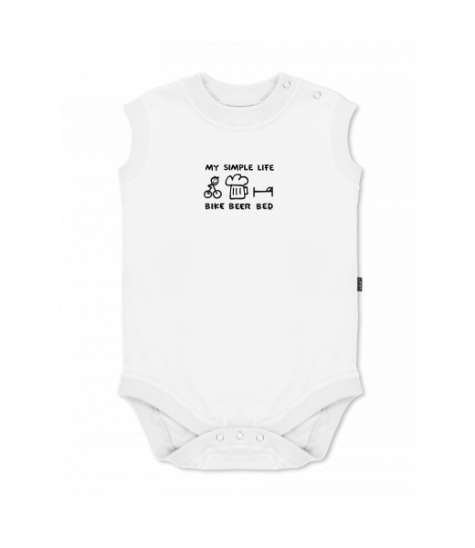 Baby body sleeveless with design for kid with design 1056 BIKE BEER BED in color WHITE