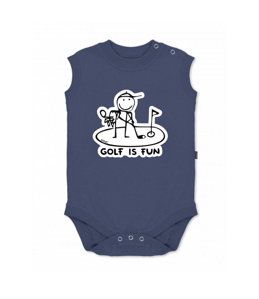 Baby body sleeveless with design for kid with design 1057 GOLF IS FUN in color JEANS