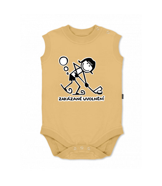 Baby body sleeveless with design for kid with design 1059 ZAKÁZANÉ UVOLNĚNÍ in color MUSTARD