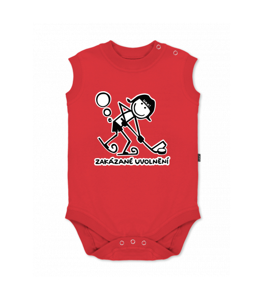 Baby body sleeveless with design for kid with design 1059 ZAKÁZANÉ UVOLNĚNÍ in color RED