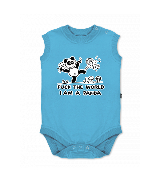 Baby body sleeveless with design for kid with design 1060 I AM A PANDA in color BLUE ATOLL