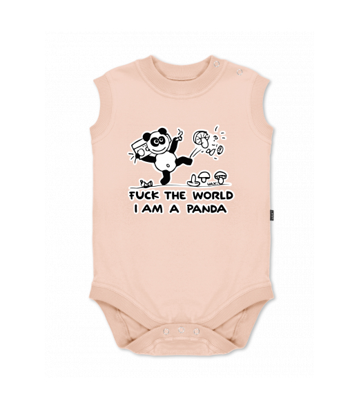 Baby body sleeveless with design for kid with design 1060 I AM A PANDA in color CAPPUCINO