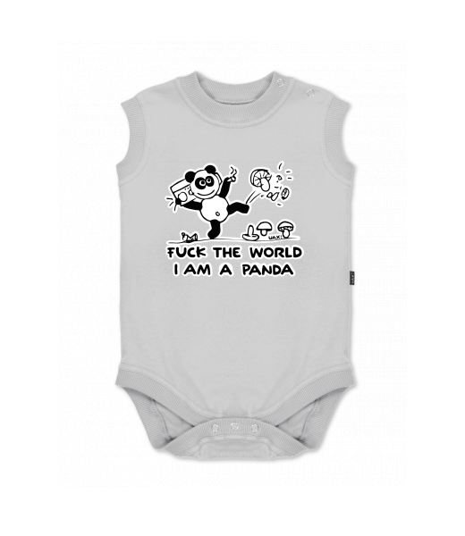 Baby body sleeveless with design for kid with design 1060 I AM A PANDA in color CEMENT