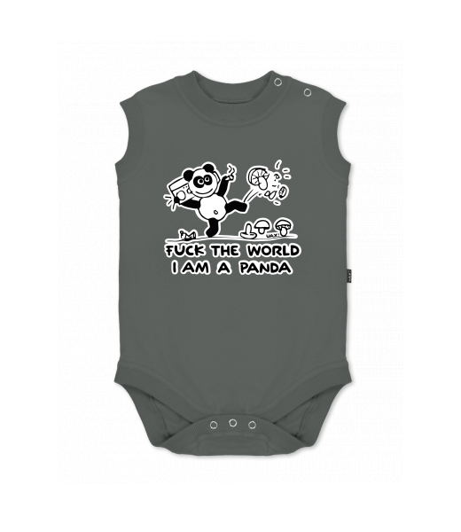 Baby body sleeveless with design for kid with design 1060 I AM A PANDA in color DARK GRAY