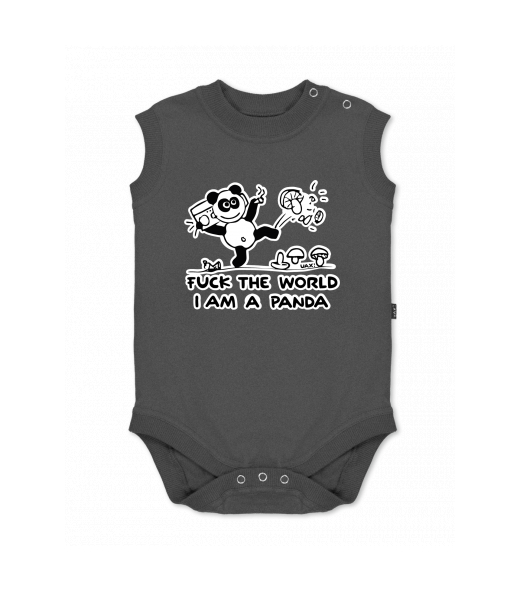 Baby body sleeveless with design for kid with design 1060 I AM A PANDA in color GRAFIT
