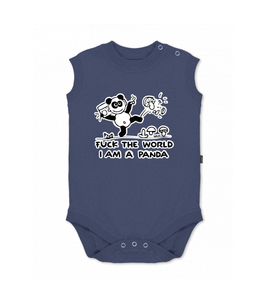 Baby body sleeveless with design for kid with design 1060 I AM A PANDA in color JEANS