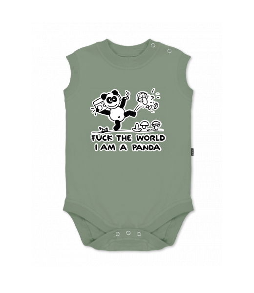 Baby body sleeveless with design for kid with design 1060 I AM A PANDA in color OLIVA