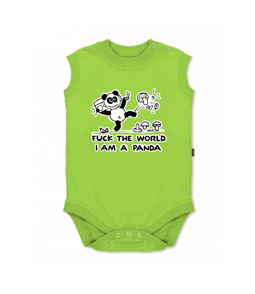 Baby body sleeveless with design for kid with design 1060 I AM A PANDA in color PARROT GREEN