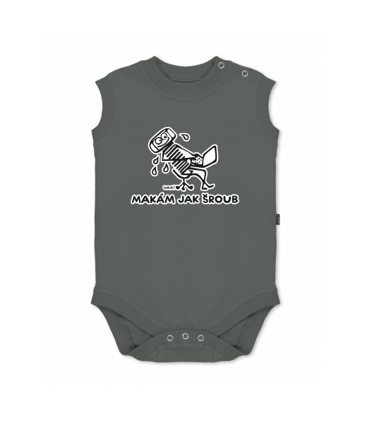Baby body sleeveless with design for kid with design 1061 MAKÁM JAK ŠROUB in color DARK GRAY