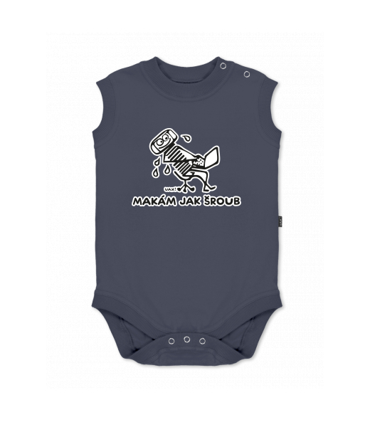 Baby body sleeveless with design for kid with design 1061 MAKÁM JAK ŠROUB in color GRAY INK