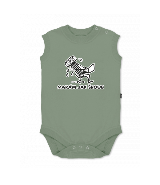 Baby body sleeveless with design for kid with design 1061 MAKÁM JAK ŠROUB in color OLIVA