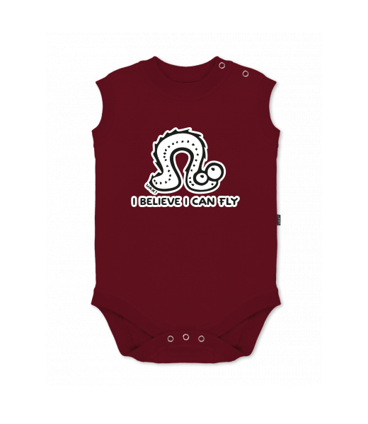 Baby body sleeveless with design for kid with design 1062 I BELIVE I CAN FLY in color DARK RED