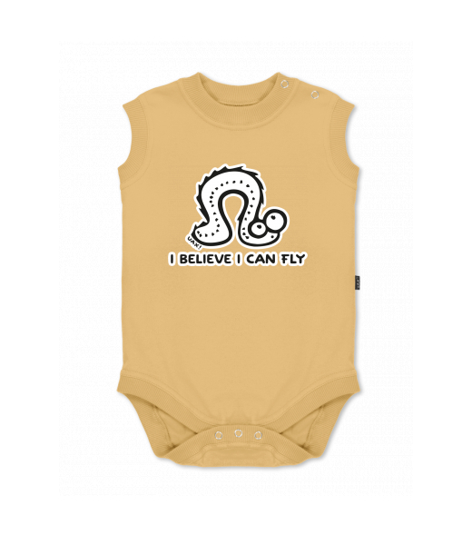 Baby body sleeveless with design for kid with design 1062 I BELIVE I CAN FLY in color MUSTARD