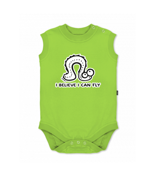 Baby body sleeveless with design for kid with design 1062 I BELIVE I CAN FLY in color PARROT GREEN