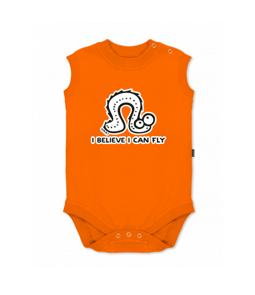 Baby body sleeveless with design for kid with design 1062 I BELIVE I CAN FLY in color SIGNAL ORANGE