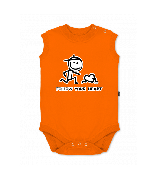 Baby body sleeveless with design for kid with design 1063 FOLOW YOUR HEART in color SIGNAL ORANGE