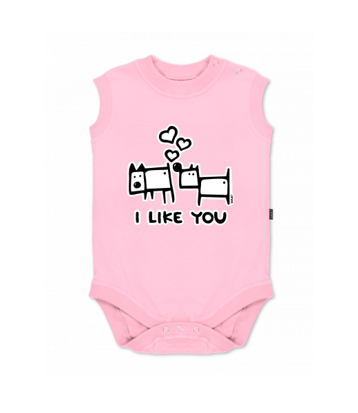 Baby body sleeveless with design for kid with design 1066 I LIKE YOU in color BABY PINK