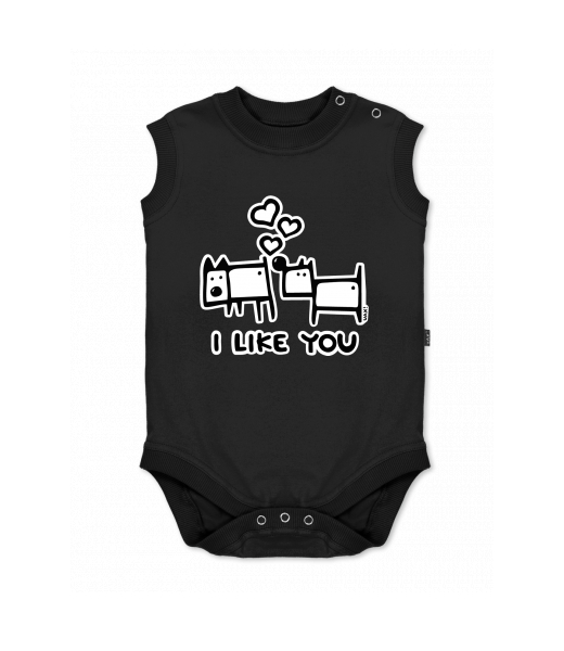 Baby body sleeveless with design for kid with design 1066 I LIKE YOU in color BLACK