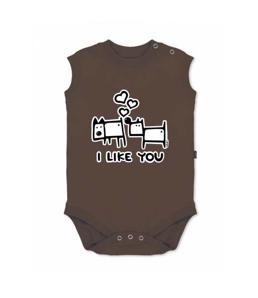Baby body sleeveless with design for kid with design 1066 I LIKE YOU in color CHESTNUT