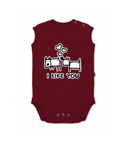 Baby body sleeveless with design for kid with design 1066 I LIKE YOU in color DARK RED