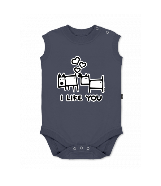 Baby body sleeveless with design for kid with design 1066 I LIKE YOU in color GRAY INK