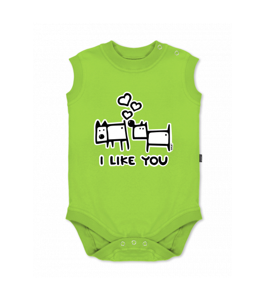 Baby body sleeveless with design for kid with design 1066 I LIKE YOU in color PARROT GREEN