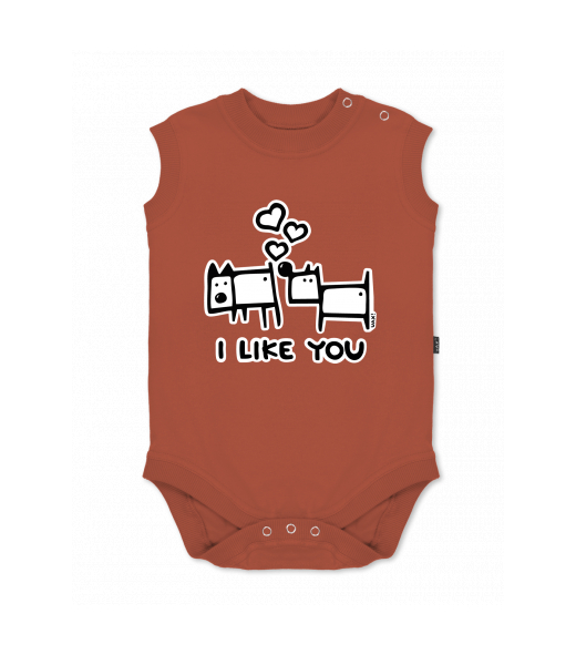 Baby body sleeveless with design for kid with design 1066 I LIKE YOU in color TERRA