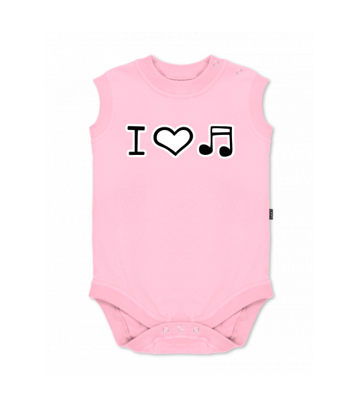 Baby body sleeveless with design for kid with design 1067 I LOVE MUSIC in color BABY PINK