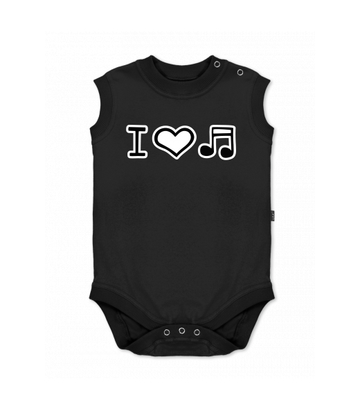 Baby body sleeveless with design for kid with design 1067 I LOVE MUSIC in color BLACK