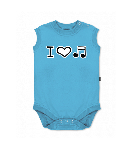 Baby body sleeveless with design for kid with design 1067 I LOVE MUSIC in color BLUE ATOLL