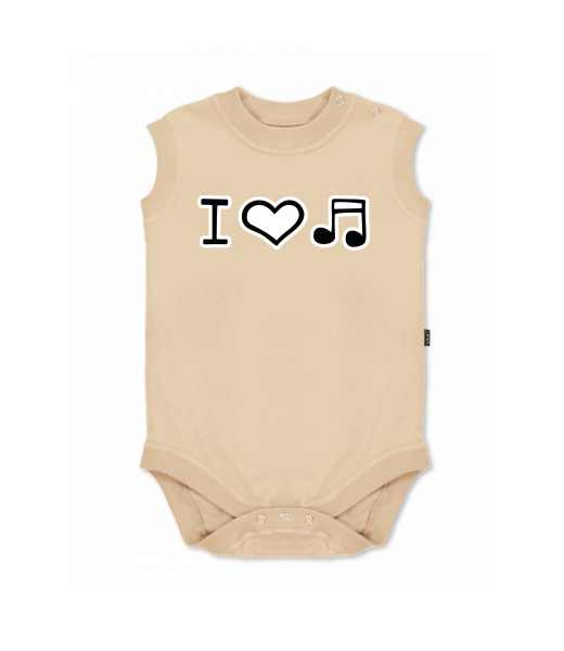 Baby body sleeveless with design for kid with design 1067 I LOVE MUSIC in color CARAMEL