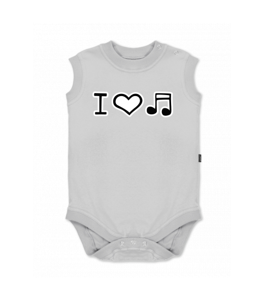 Baby body sleeveless with design for kid with design 1067 I LOVE MUSIC in color CEMENT