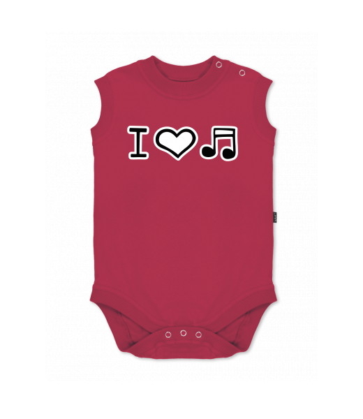 Baby body sleeveless with design for kid with design 1067 I LOVE MUSIC in color CHILLY PEPPER RED