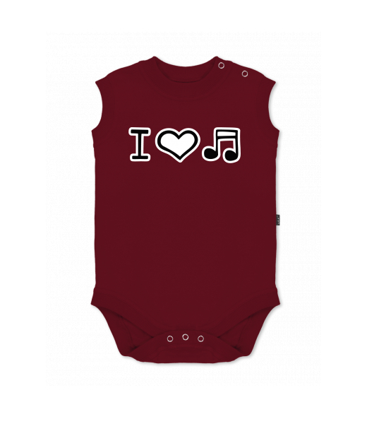 Baby body sleeveless with design for kid with design 1067 I LOVE MUSIC in color DARK RED