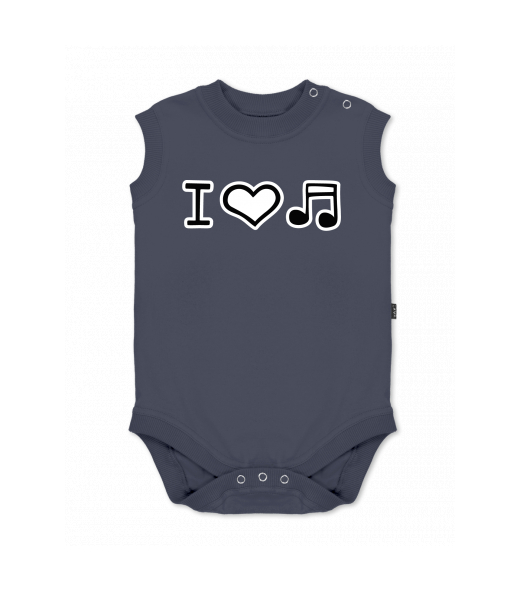 Baby body sleeveless with design for kid with design 1067 I LOVE MUSIC in color GRAY INK
