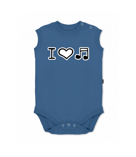 Baby body sleeveless with design for kid with design 1067 I LOVE MUSIC in color MOONLIGHT BLUE