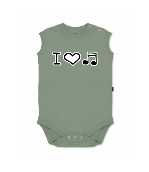 Baby body sleeveless with design for kid with design 1067 I LOVE MUSIC in color OLIVA