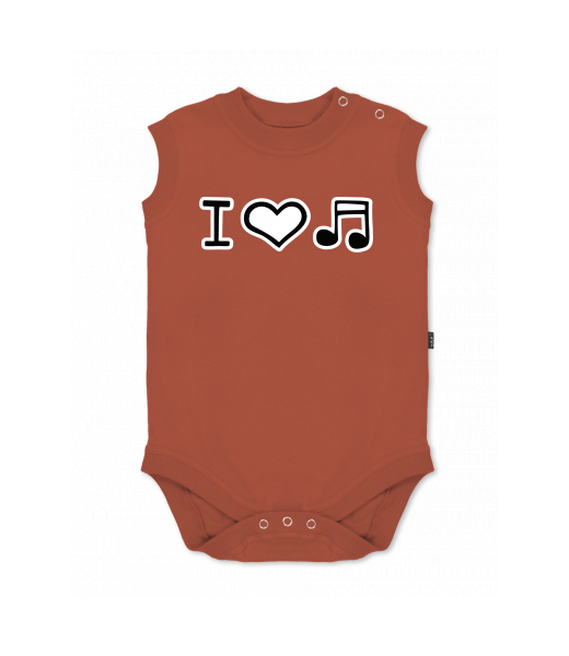 Baby body sleeveless with design for kid with design 1067 I LOVE MUSIC in color TERRA