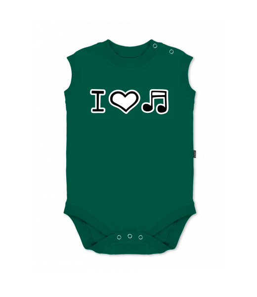 Baby body sleeveless with design for kid with design 1067 I LOVE MUSIC in color UNIVERSITY GREEN