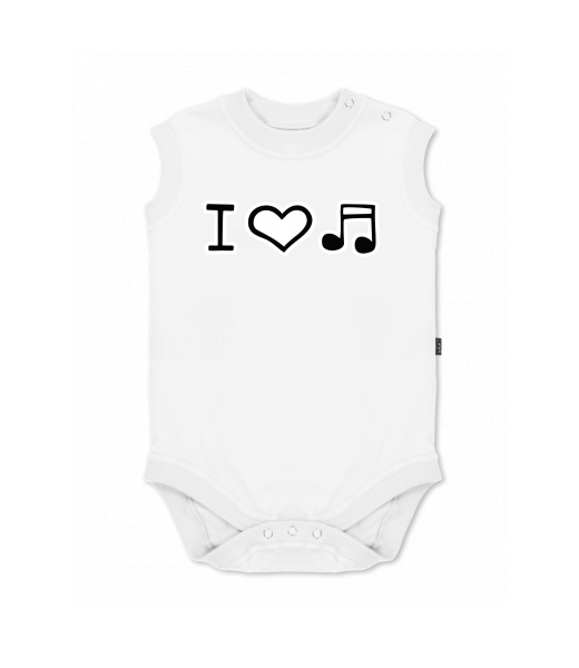 Baby body sleeveless with design for kid with design 1067 I LOVE MUSIC in color WHITE