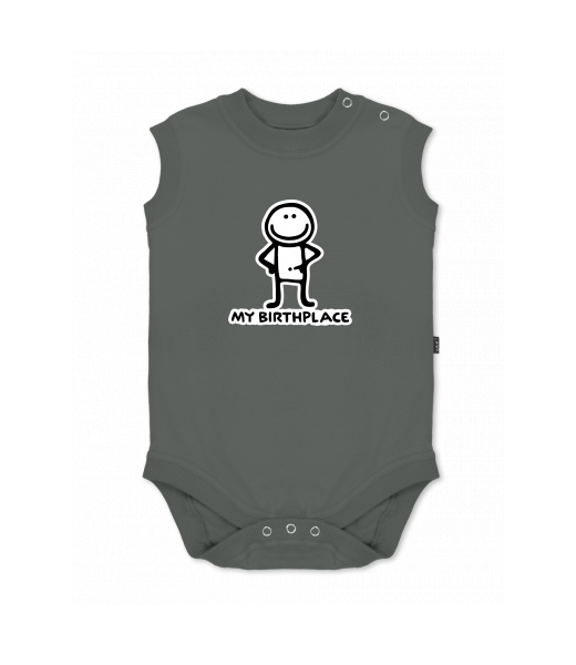 Baby body sleeveless with design for kid with design 1069 MY BIRTHPLACE in color DARK GRAY