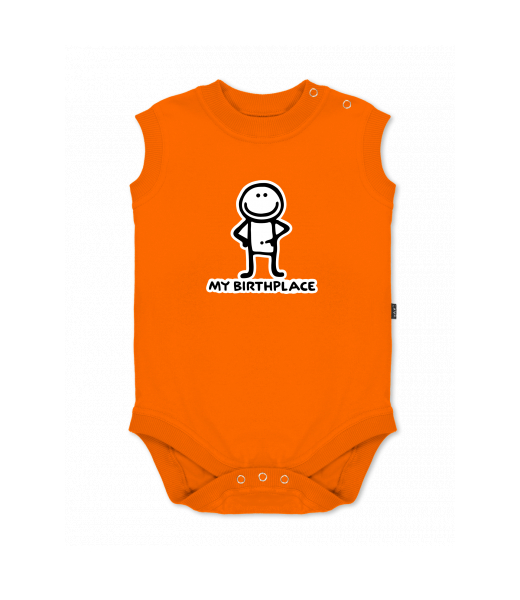 Baby body sleeveless with design for kid with design 1069 MY BIRTHPLACE in color SIGNAL ORANGE
