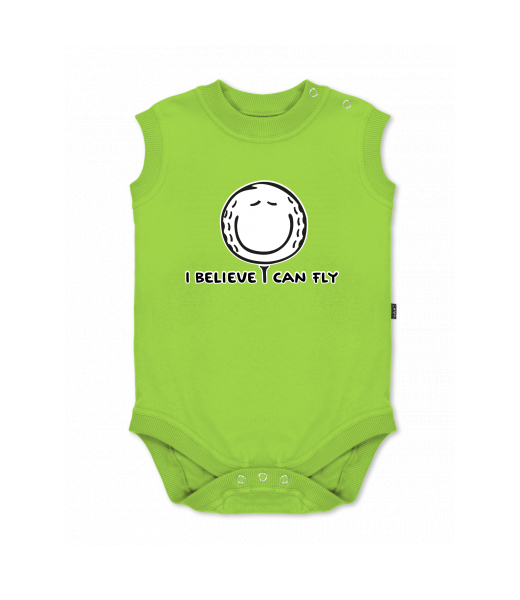 Baby body sleeveless with design for kid with design 1070 I BELIEVE I CAN FLY in color PARROT GREEN