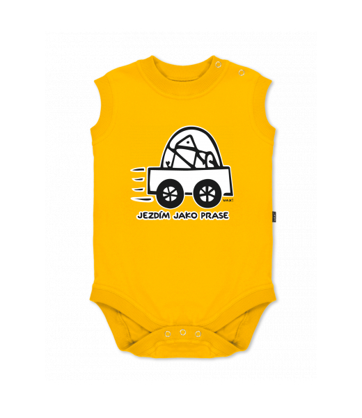 We make sustainable UAX clothing! - hand sewn in the Czech Republic uaxKids uaxAll productsBaby bodyBABY BODY SLEEVELESSdesign 1072 - JEZDÍM JAKO PRASEGOLDEN CREAM